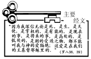 主要经文: “因为我深信无论是死,是生,是天使,是掌权的,是有能的,是现在的事,是将来的事,是高处的,是低处的,是别的受造之物,都不能叫我们与神的爱隔绝;这爱是在我们的主基督耶稣里的。”(罗八38-39)